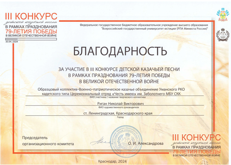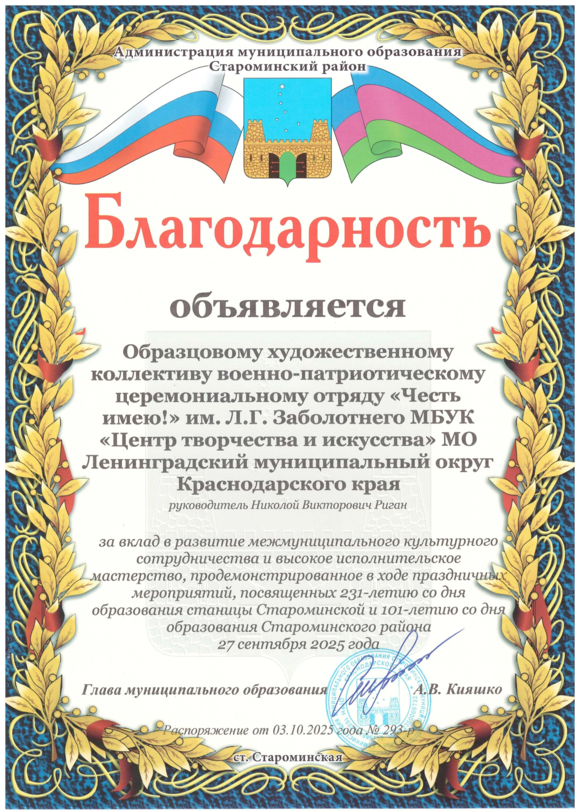 Кадеты Церемониального отряда "Честь имею!" стали участниками мероприятий 15 федерального, 20 краевого, 8 межрайонного, 59 районного значения