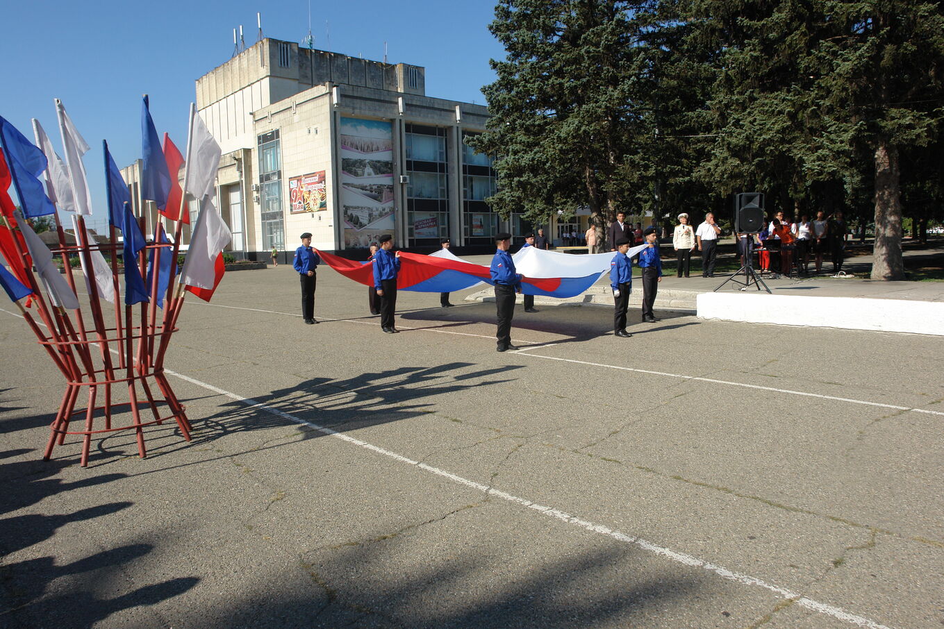 Кадеты отряда - единственные в Краснодарском крае, кто выполняет церемониал развертывания государственного флага России. Размер полотна составляет 6х4 и 9х6 метров.